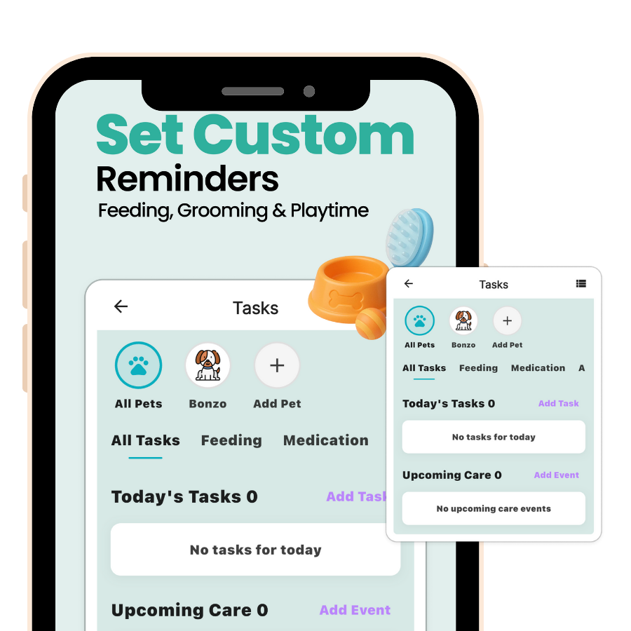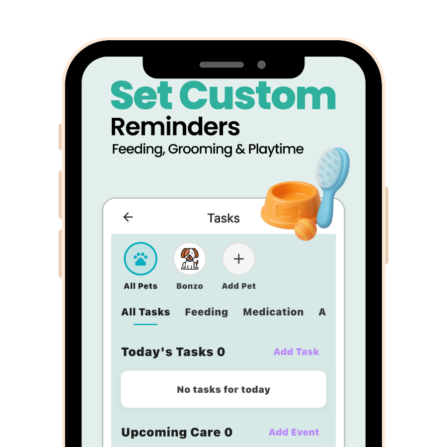 Create schedules for feeding, walks, grooming, playtime, and more—tailored to each pet.