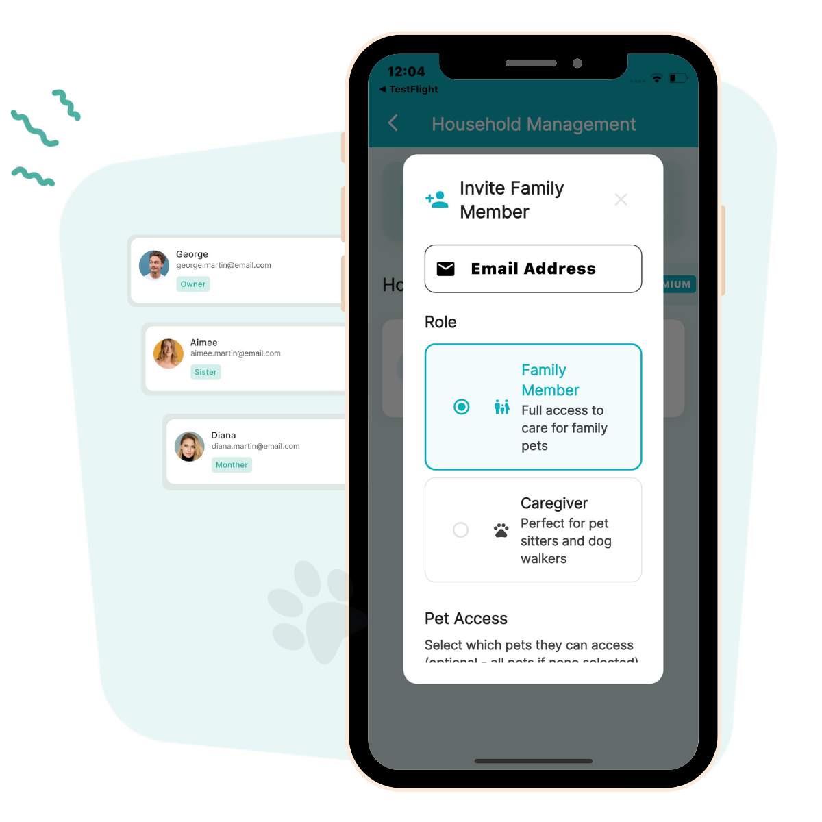 Share care with family, roommates, and pet sitters in a few taps.