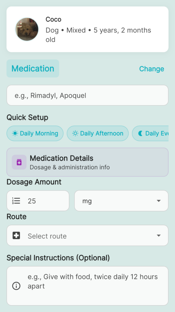 - Add a “missed dose” rule. Example: “If we miss, we call the vet before doubling.”